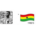 Dividido extravagante e expressiva (que incorpora as cores da bandeira nacional), que exibiu o ganês nacional na década de 90, antes de se mudar para o uniforme branco atual. Com esta camisa, Gana ganhou sua última Copa Africano do (1982), batendo os anfitriões da Líbia nos pênaltis. Esta camisa vestiu um dos melhores jogadores africanos de todos os tempos, Abedi Pelé, vencedor em 1982 e início dos anos noventa de três bolas consecutivas de ouro na África.