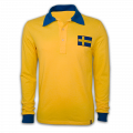 Natty com os botões na gola com os quais a Suécia jogou a Copa do Mundo em casa. Foi o melhor Mundial de sua história: eles se renderam apenas na final contra o Brasil e contra um Pelé extraordinária, depois de bater a Hungria Puskas, URSS e Alemanha Ocidental. Símbolos eram o futuro treinador da Roma, Nils Liedhom, Hamrin e Simonsson.